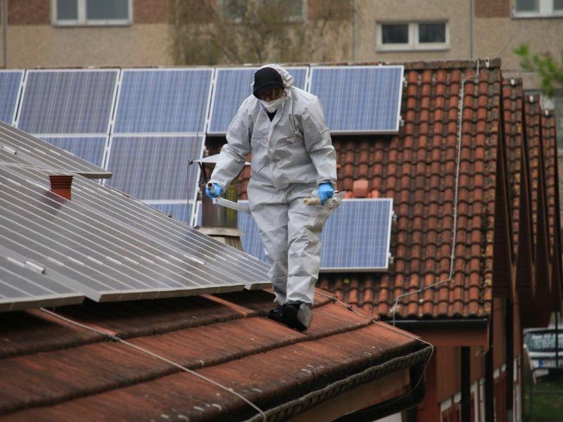 Die Spurensicherung auf dem Dach der Flüchtlingsunterkunft in Artern. Foto: WichmannTV