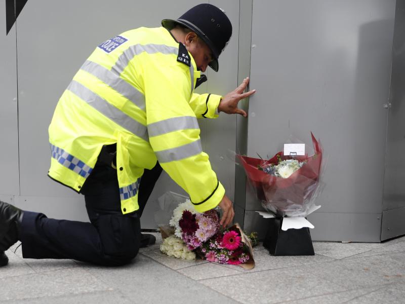 Trauer: Ein Polizist legt einen Blumenstrauß nieder. foto: Tolga Akmen