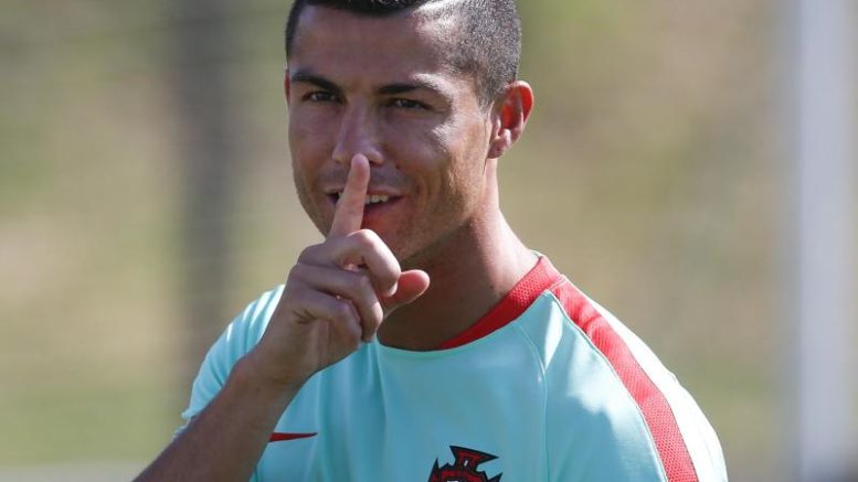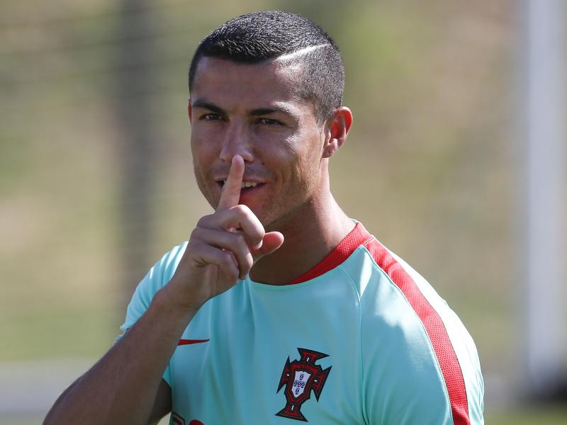 Schön still sein: Cristiano Ronaldo beim Training der portugiesischen Nationalmannschaft. Foto: Filipe Amorim