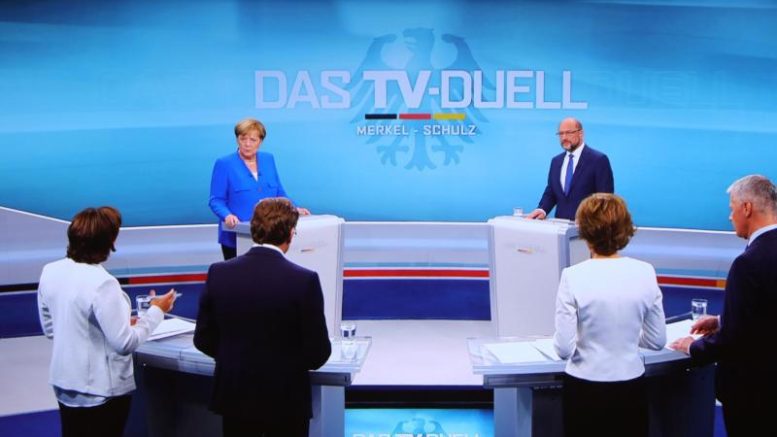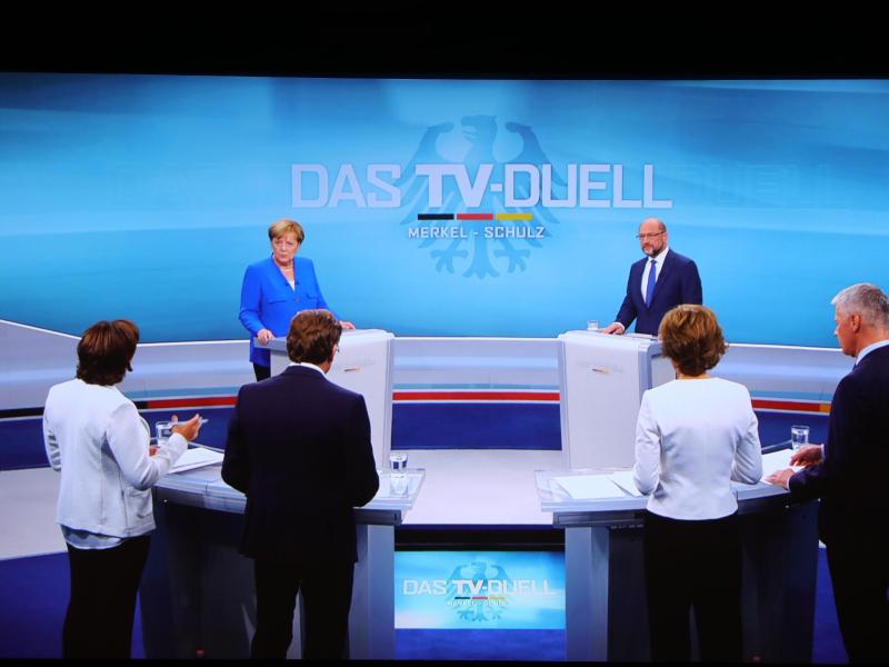 Das Duell wurde von den vier Sendern ARD, ZDF, RTL und Sat.1 veranstaltet und ausgestrahlt. Es wurde erwartet, dass bis zu 20 Millionen Zuschauer den Schlagabtausch verfolgen. Das TV-Duell gilt als Höhepunkt des bisher eher müde verlaufenden Bundestagswahlkampfs. Die SPD erhofft sich davon eine Trendwende in der Wählergunst – seit Wochen liegt die Partei von Schulz in den Umfragen weit hinter der Union.