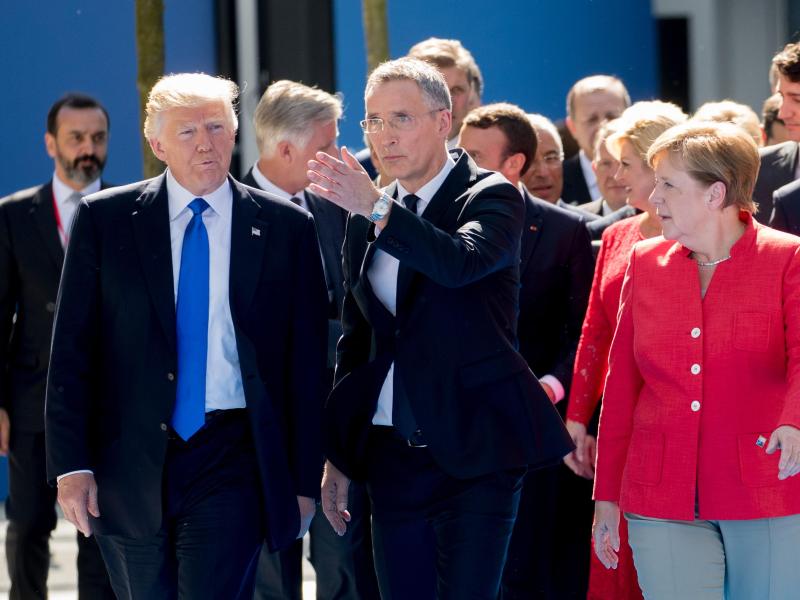 Bundeskanzlerin Merkel hielt dagegen. Die geplante Erhöhung der deutschen Verteidigungsausgaben sei ausreichend, sagte sie. Die Bündnis-Beschlüsse zur Steigerung der Verteidigungsausgaben im würden nur bestätigt. «Bestätigen heißt: Nicht mehr und nicht weniger», sagte Merkel. Trotzdem kamen die Nato-Verbündeten Trump entgegen, indem sie zwei seiner Forderungen erfüllten: Sie billigten den formalen Beitritt der Nato zur Koalition gegen die Terrormiliz Islamischer Staat. Und sie kündigten Pläne zum Erreichen des Ziels an, Zwei Prozent des Bruttosozialprodukts für Verteidigung auszugeben.