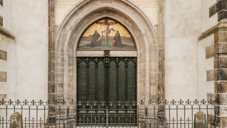 Das berühmte Tor der Schlosskirche in Wittenberg,